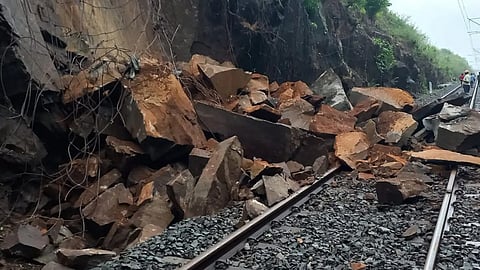 മഹാരാഷ്ട്രയിൽ കനത്ത മഴ; കൊങ്കൺ പാതയിലേക്ക് പാറയിടിഞ്ഞ് വീണു