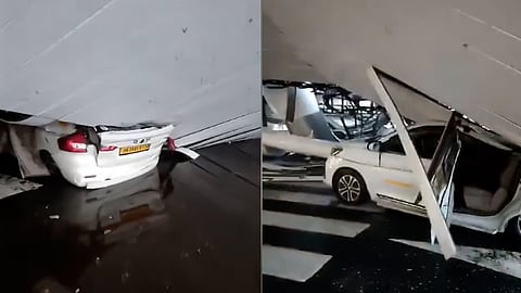 വെള്ളിയാഴ്ച പുലർച്ചെ 5 മണിയോടെ കനത്ത മഴക്കിടെ ടെര്മിനല് ഒന്നിന്റെ ഡിപാര്ച്ചര് മേഖലയിലാണ് അപകടമുണ്ടായത്. തുടർന്ന് വിമാനസര്വീസുകള് താല്ക്കാലികമായി നിര്ത്തിവച്ചു. വിമാനത്താവളത്തിന്റെ മേല്ക്കൂരയുടെ ഒരുഭാഗം തകര്ന്നുവീണു പാർക്ക് ചെയ്തിരുന്ന വാഹനങ്ങളുടെ മുകളിലേക്ക് പതിക്കുകയായിരുന്നു. മേല്ക്കൂരയ്ക്ക് അടിയില് കുടുങ്ങിയ വാഹനങ്ങള് ഇതുവരെ മാറ്റിയിട്ടില്ല. ദേശീയ ദുരന്ത നിവാരണ സേനയടക്കം സ്ഥലത്തെത്തി രക്ഷാപ്രവര്ത്തനം തുടരുകയാണ്.