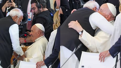 ബാരി (ഇറ്റലി): ജി7 ഉച്ചകോടിക്കിടെ കൂടിക്കാഴ്ച നടത്തി പ്രധാനമന്ത്രി നരേന്ദ്ര മോദിയും ഫ്രാൻസിസ് മാർപാപ്പയും. തെക്കൻ ഇറ്റലിയിലെ അപുലിയയിൽ ബോർഗോ എഗ്നാസിയയിൽ നടക്കുന്ന ഉച്ചകോടിയിൽ ആർട്ടിഫിഷ്യൽ ഇന്റലിജൻസ്, ആഫ്രിക്ക, ഊർജം, മെഡിറ്ററേനിയൻ വിഷയങ്ങളുടെ ചർച്ചയ്ക്കു മുന്നോടിയായിരുന്നു ഊഷ്മളമായ കൂടിക്കാഴ്ച. വീൽചെയറിലെത്തിയ മാർപാപ്പയും മോദിയും ഇരുകൈകളും കോർത്ത് അഭിവാദ്യം ചെയ്തശേഷം ആശ്ലേഷിച്ചു. പുഞ്ചിരിച്ചുകൊണ്ട് ഇരുവരും കുശലം പങ്കുവയ്ക്കുകയും ചെയ്തു. ഇറ്റാലിയൻ പ്രധാനമന്ത്രി ജോർജിയ മെലൂനി 87 പിന്നിട്ട മാർപാപ്പയ്ക്ക് ഒപ്പമുണ്ടായിരുന്നു.ആർട്ടിഫിഷ്യൽ ഇന്റലിജൻസിനെ നന്മയ്ക്കു വേണ്ടി ഉപയോഗിക്കണമോ എന്നത് നമ്മുടെ തീരുമാനത്തെ ആശ്രയിച്ചാണുള്ളതെന്നു മാർപാപ്പ ഉച്ചകോടിയിൽ പറഞ്ഞു.