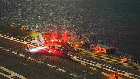 ന്യൂഡൽഹി: ഇന്ത്യ തദ്ദേശീയമായി നിർമിച്ച വിമാനവാഹിനി ഐഎൻഎസ് വിക്രാന്തിൽ മിഗ് 29 കെ വിമാനത്തിന്റെ രാത്രികാല ലാൻഡിങ് വിജയകരമായി പൂർത്തിയാക്കി. അറബിക്കടലിലുള്ള കപ്പലിൽ ബുധനാഴ്ച രാത്രിയാണു മിഗ് 29കെ വിമാനം ഇറക്കിയത്. ഇതാദ്യമാണ് ഐഎൻഎസ് വിക്രാന്തിൽ വിമാനത്തിന്റെ രാത്രികാല ലാൻഡിങ്. ചരിത്രത്തിലെ നാഴികക്കല്ലെന്നാണ് ഈ നേട്ടത്തെ നാവികസേന വിശേഷിപ്പിച്ചത്.