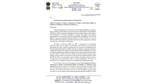 'വിശ്വാസത്തിന്റെ സംരക്ഷകർ അഥവാ അവകാശങ്ങളെ അടിച്ചമർത്തുന്നവർ: കുട്ടികളുടെ ഭരണഘടനാ അവകാശങ്ങളും മദ്രസകളും' എന്ന തലക്കെട്ടിലുള്ള 11 പേജ് കത്തിലെ പ്രസക്ത ഭാഗങ്ങൾ ഇങ്ങനെ:
