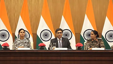 ന്യൂഡൽഹി: ഇന്ത്യയും പാക്കിസ്ഥാനും തമ്മിലുള്ള സംഘർഷങ്ങൾ വർധിച്ചുവരുന്ന സാഹചര്യത്തിൽ, പ്രതിരോധമന്ത്രാലയവും വിദേശകാര്യമന്ത്രാലയവും വിളിച്ചു ചേർത്ത പ്രത്യേക വാർത്താസമ്മേളനത്തിൽ അതിർത്തിയിലെ സാഹചര്യങ്ങൾ രാജ്യത്തോട് വിശദീകരിച്ച് വിദേശകാര്യ സെക്രട്ടറി വിക്രം മിർസിയും സൈനികോദ്യോഗസ്ഥ വ്യോമിക സിങ്ങും.