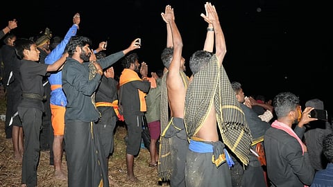 കോതമംഗലം: മകരജ്യോതി ദർശനത്തിൽ സായൂജ്യമടഞ്ഞ് പുല്ലുമേട്ടിൽ നിന്നും ആയിരക്കണക്കിന് ഭക്തർ മലയിറങ്ങി. ദിവസം മുഴുവൻ നീണ്ട കാത്തിരിപ്പിനൊടുവിൽ വൈകിട്ട് 6.45 ഓടെയാണ് മകര ജ്യോതി തെളിഞ്ഞത്. ഇതരസംസ്ഥാനങ്ങളിൽ നിന്നടക്കം എത്തിയ ആയിരക്കണക്കിന് ഭക്തർ ശരണം വിളികളോടെ മകരജ്യോതി വണങ്ങി. 7245 ഭക്തരാണ് ഇത്തവണ മകര ജ്യോതി ദർശനത്തിനായി പുല്ലുമേട്ടിലെത്തിയത്.