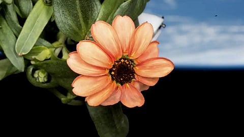 ബഹിരാകാശത്ത് നട്ടുവളർത്തിയ പൂവിന്റെ ചിത്രം പുറത്തു വിട്ട് നാസ. നാസയുടെ ഔദ്യോഗിക ഇന്സ്റ്റഗ്രാം അക്കൗണ്ടിലൂടെയാണ് ചിത്രം പങ്കുവച്ചത്. അന്താരാഷ്ട്ര ബഹിരാകാശ നിലയത്തിലെ വെജ്ജി സൗകര്യത്തിന്റെ ഭാഗമായാണ് സീനിയ എന്ന പൂച്ചെടി ഭ്രമണപഥത്തിൽ വളർത്തിയത്. സീനിയ പൂവിന് ഓറഞ്ച് ദളങ്ങളാണുള്ളത്. ചെടിയുടെ ഇലകളും ചിത്രത്തിൽ കാണാം. ഔട്ട് ഓഫ് ഫോക്കസിൽ ഭൂമിയും ബഹിരാകശത്തിന്റെ കറുപ്പു നിറവും ചിത്രത്തിൽ കാണാം.