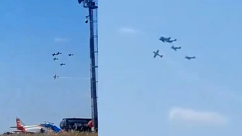 സംഭവ സ്ഥലത്തുണ്ടായിരുന്ന ഒരു കാഴ്ചക്കാരൻ ചിത്രീകരിച്ച വീഡിയോ പുറത്തുവന്നു. 6 വിമാനങ്ങൾ പറന്നുയരുന്നത് ആദ്യം ദൃശ്യങ്ങളിൽ കാണാം. തൊട്ടു പിന്നാലെ അവയിലൊന്ന് പറന്ന് ഉയരുകയും, മറ്റൊന്നിൽ ഇടിക്കുകയും താഴെ വീഴുകയുമായിരുന്നു. ഒരു വിമാനം എയർബേസിന്റെ ഗ്രൗണ്ടിന് പുറത്ത് തകർന്നുവീഴുകയും അപകടത്തിൽ പെട്ട രണ്ടാമത്തെ വിമാനം എയർപോർട്ട് ടാർമാക്കിൽ ലാൻഡ് ചെയ്തു. കാണികളിൽ ആർക്കും പരിക്കില്ലെന്ന് വ്യോമസേന കൂട്ടിച്ചേർത്തു.