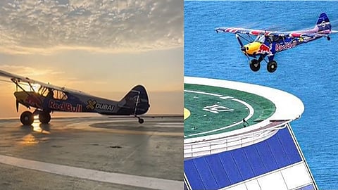 ദുബായ് : അതിസാഹസികത നിറഞ്ഞൊരു ലാൻഡിങ്ങാണു കഴിഞ്ഞദിവസം ദുബായ് ബുർജ് അൽ അറബ് ഹോട്ടലിന്റെ ഹെലിപാഡിൽ നടന്നത്. ഹോട്ടലിന്റെ അമ്പത്തിയാറാം നിലയിലെ ഹെലിപാഡിൽ വിമാനമിറക്കി ഒരു പോളിഷ് പൈലറ്റ്. പ്രത്യേകമായി ഡിസൈൻ ചെയ്ത വിമാനത്തിന്റെ സുരക്ഷിതമായ ലാൻഡിങ്ങിനായി, രണ്ടു വർഷത്തോളം, 650-ലേറെ തവണയാണ് പൈലറ്റ് ലൂക്ക് സെപിയേല പരിശീലനം നടത്തിയത്.