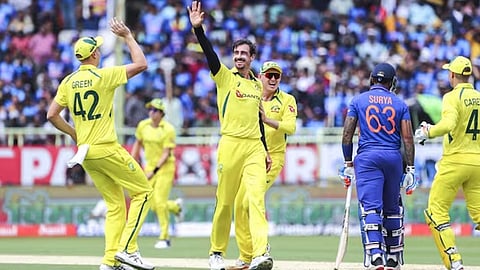 ടോസ് നഷ്ടപ്പെട്ട് ബാറ്റിങ്ങിനിറങ്ങിയ ഇന്ത്യ 26 ഓവറിൽ 117 റൺസ് നേടി ഓൾ ഔട്ടാവുകയായിരുന്നു. കളിയുടെ തുടക്കത്തിൽ തന്നെ ശുഭ്മാൻ ഗിൽ, രോഹിത് ശർമ്മ, സൂര്യകുമാർ യാദവ്, കെ എൽ രാഹുൽ എന്നിവരുടെ വിക്കറ്റുകൾ നഷ്ടമായി. മിച്ചൽ സ്റ്റാർക്കാണ് ആദ്യ നാലു വിക്കറ്റുകളും നേടിയത്. ഇതോടെ കളി ഓസ്ട്രേലിയക്ക് അനുകൂലമായി. 35 പന്തിൽ നിന്നും 31 റൺസ് നേടിയ വിരാട് കോഹ്ലിയാണ് ഇന്ത്യയുടെ ടോപ് സ്കോറർ.