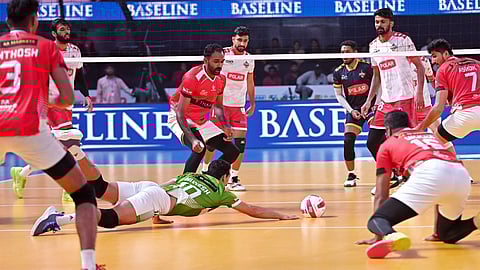 പ്രൈം വോളിബോള് ലീഗില് വെള്ളിയാഴ്ച്ച നടന്ന കാലിക്കറ്റ് ഹീറോസ് - കൊല്ക്കത്ത തണ്ടര്ബോള്ട്ട്സ് മത്സരത്തില് നിന്ന്.