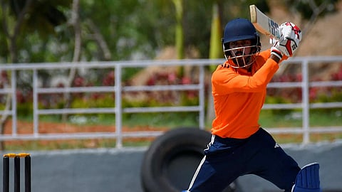 South Zone opener Rohan Kunnummal square cuts a ball in Deodhar Trophy final against East Zone in Puducherry on Thursday, August 3.