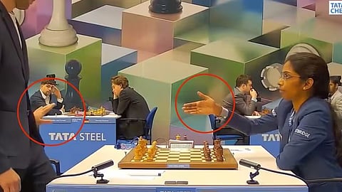 ആംസ്റ്റർഡാം: ഇന്ത്യയുടെ ഗ്രാൻഡ് മാസ്റ്റർ ആർ. വൈശാലിക്ക് ഹസ്തദാനം നൽകാൻ തയാറാകാതെ ഉസ്ബക്കിസ്ഥാൻ താരം നോദിർബെക്ക് യാകുബ്ബോവ്. നെതർലൻഡ്സിലെ ചെസ് ടൂർണമെന്റിനിടെയാണ് സംഭവം. മത്സരം തുടങ്ങുന്നതിനു തൊട്ടു മുൻപേ വൈശാലി ഉസ്ബക് താരത്തിനു നേരെ കൈ നീട്ടിയെങ്കിലും താരം നിഷേധിക്കുകയായിരുന്നു.