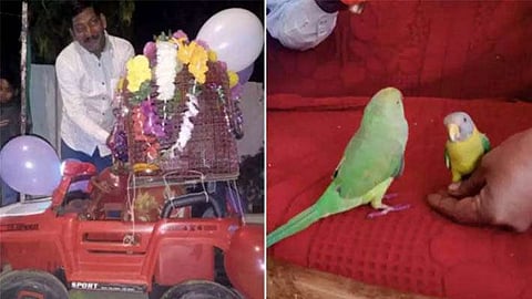 പിപാരിയ സ്വദേശി പരിഹാറിന്റെ വളർത്ത് മൈനയ്ക്കാണ് ബാദൽ ലാൽ വിശ്വകർമയുടെ വളർത്ത് തത്ത വരനായത്.