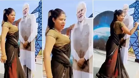 ഏകദേശം 15 സെക്കന്ഡ് ദൈര്ഘ്യമുള്ള വീഡിയോ സോഷ്യല് മീഡിയയില് വൈറലാണ്. കേന്ദ്ര സര്ക്കാരിന്റെ നേട്ടങ്ങളും ക്ഷേമപദ്ധതികളും പ്രചരിപ്പിക്കുന്നതിന്റെ ഭാഗമായി രാജ്യത്തിന്റെ വിവിധ ഭാഗങ്ങളിൽ നരേന്ദ്ര മോദിയുടെ കട്ടൗട്ടുകള് സ്ഥാപിച്ചിട്ടുണ്ട്. ഈ കട്ടൗട്ടിനൊപ്പം 'ആജാ സാജന് ആജ' എന്ന ഗാനത്തിന്റെ പശ്ചാത്തലത്തില് യുവതി നൃത്തം ചെയ്യുന്നതാണ് വീഡിയോ.